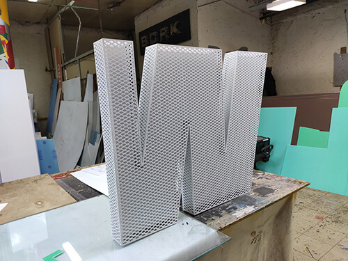 Изготовление световой буквы для сети фитнес "Worldclass". Буква состоит из внешней части - псевдо решетки и внутренней световой буквы. Смотрится эффектно.